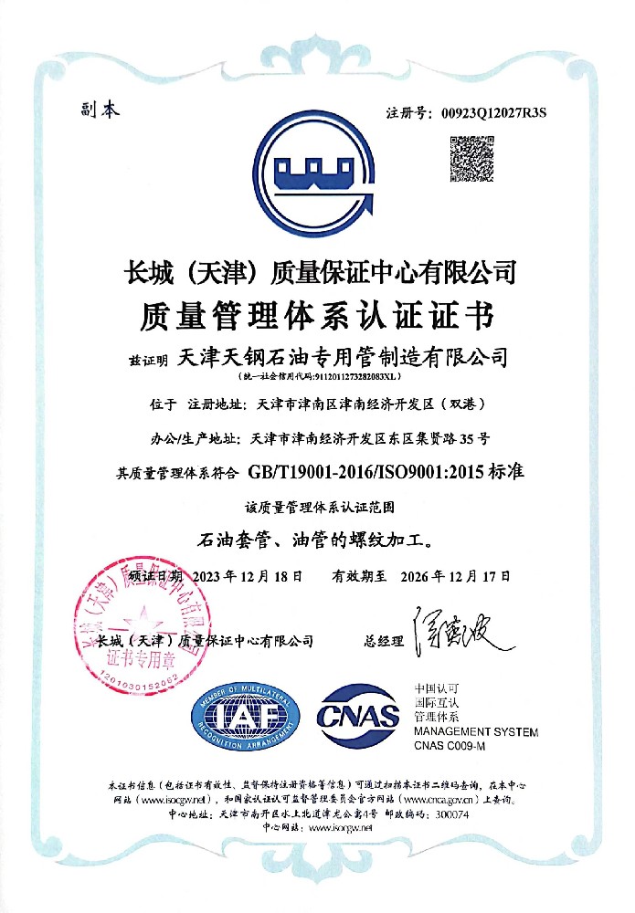 天津天鋼石油專用管制造有限公司(以下簡稱天鋼石油)是專業(yè)生產(chǎn)高端石油專用管、割縫篩管、復(fù)合篩管及接箍的企業(yè),公司座落在天津市津南經(jīng)濟(jì)開發(fā)區(qū),緊靠外環(huán)線,東臨天津港(13公里),距天津機(jī)場20公里,鐵路10公里,交通便利,地理條件優(yōu)越。 天鋼石油自1997年成立以來,依靠自身實(shí)力不斷發(fā)展,目前已投資建設(shè)了天津美津鋼管有限公司、天津濱海天成石油鉆采器材有限公司,現(xiàn)有員工300余人,占地200余畝。 公司擁有雄厚的制造與開發(fā)能力,年產(chǎn)套管、油管30萬噸,接箍200萬只。公司具備一流的實(shí)驗及檢測設(shè)備與手段,獨(dú)立的實(shí)驗室及技術(shù)中心,匯集了一批石油專用管行業(yè)的科研和生產(chǎn)精英,目前已成功開發(fā)出行業(yè)領(lǐng)先水準(zhǔn)的TG-QMI系列;TTSP-1系列;TTSP-2系列和割縫管;復(fù)合篩管。在國內(nèi)外油田使用,受到了客戶的廣泛好評。 天鋼石油堅持以人為本,客戶至上的經(jīng)營管理理··· ...